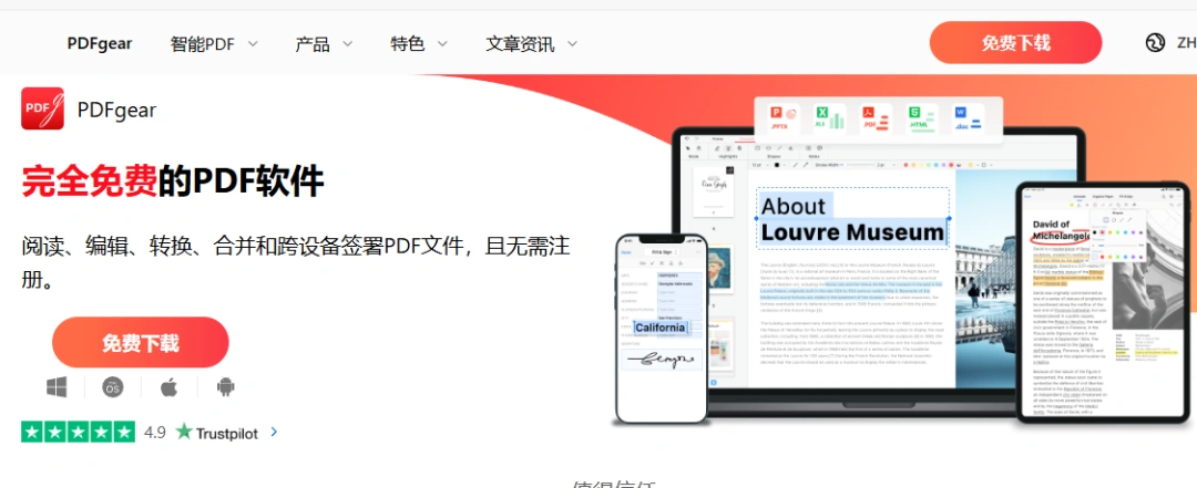 PDFgear完全免费的PDF软件,四端支持使用,可以免费,高效,无限制的编辑、转化、合并、拆分.....PDF文件,并且不需要登录即可使用,简单又高效,功能也能全面~